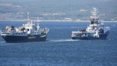 Ege Denizi’nden saat 10.45’te Çanakkale Boğazı’na giriş yapan, Rus Donanması’na ait ‘Serger Balk’ askeri römorkör ile arkasında halatla çektiği ‘IMAN’…